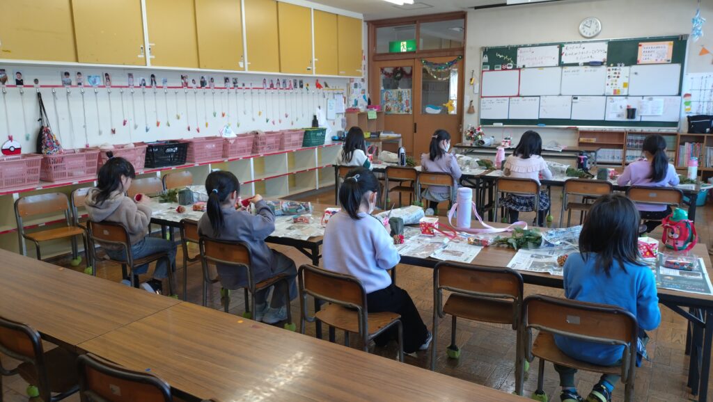 児童センター内「文化教室」の時間で、センターを利用する小学2・3年生対象にクリスマスアレンジのレッスンを行いました。