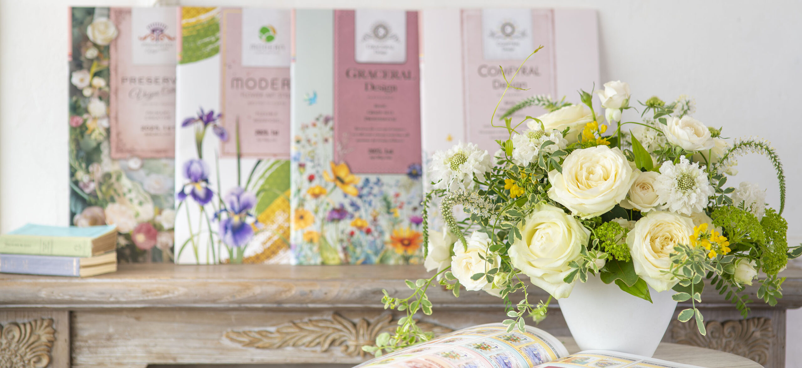 ヨーロピアンフラワーデザイン連盟では、受講生の趣味やライフスタイルに合わせた様々なブランド(レッスンプログラム)を展開しています。インストラクターとしての活動を希望される方へは、ご自身の知識・経験・技術に合わせたレッスンを開催していただけるよう、充実した教材やマニュアル、花材・資材を提供しています。